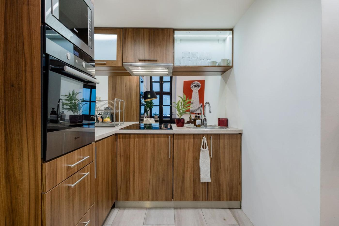One-Bedroom Loft Apartment with One Queen Bed. The air-conditioned apartment features 1 bedroom, 1 bathroom and a kitchen. The apartments kitchen is available for cooking and storing food. Featuring a terrace, this apartment also provides a washing machine, heating and a flat-screen TV. The unit offers 2 beds.